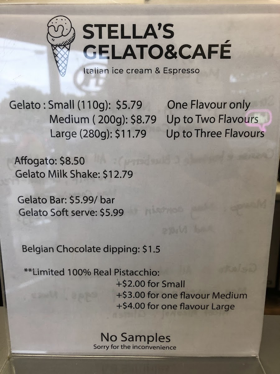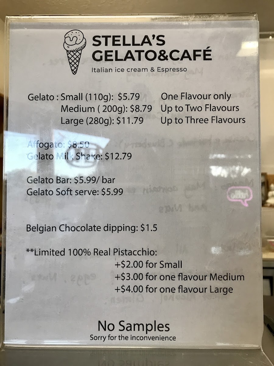 Stella’s Gelato & Café Menu